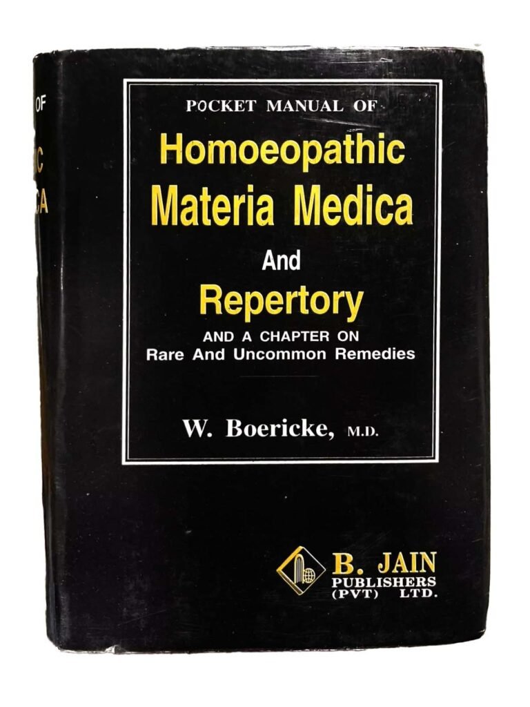 Homeopathic Materia Medica by William Boericke (1849 – 1929). The book contains the well-known verified characteristic symptoms of all medicines besides other less important symptoms aiding the selection of the curative remedy. Boericke has tried to give a succinct resume of the symptomatology of every medicine used in Homœopathy, including also clinical suggestions of many drugs so far not yet based on provings, thus offering the opportunity to experiment with these and by future provings discover their distinctive use and so enlarging our armamentarium. Originally Published in 1901.